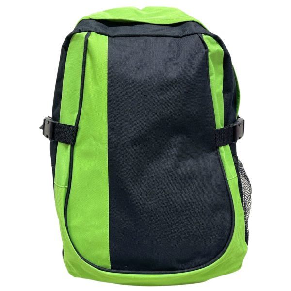 This two-tone green and black backpack offers practical everyday storage with a spacious main compartment, adjustable padded shoulder straps, and a built-in side mesh bottle holder for easy hydration access. Designed with secure side clip straps to help stabilize and compress the bag’s contents, it provides reliable organization for school, travel, or daily use. The durable fabric construction and top carry handle add convenience, while the simple, sporty design keeps it versatile for all ages.From handle to bottom- measures 10 x 6 x 19.5 inches ,Two Tone Color Backpack with Side Bottle Holder and Side Clips in Green/Black,