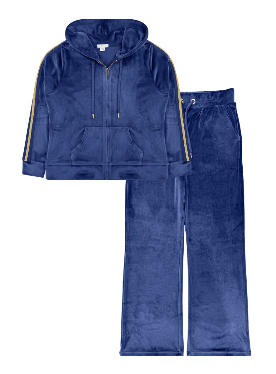 10 Bulk Womens Velour Zip Hoodie & WidE-Leg Pant Set Assorted Sizes S-L, Blue