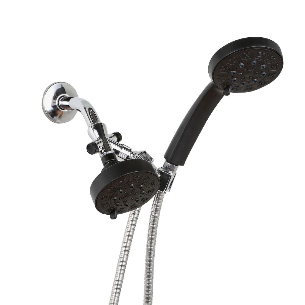 Enhance your showering experience with the 3-Way Shower Head/Handheld Showerhead Combo in Matte Black. This versatile set features both a fixed shower head and a handheld showerhead, allowing you to choose your preferred showering option. With five different modes, including spray, pulse, shower + spray, and shower + pulse, you can customize your shower to fit your needs. The sleek matte black finish adds a contemporary touch to your bathroom, while the easy-to-clean silicone nozzles prevent clogging for consistent water flow. The adjustable swivel ball joint ensures precise positioning, and the included hardware makes installation quick and hassle-free.