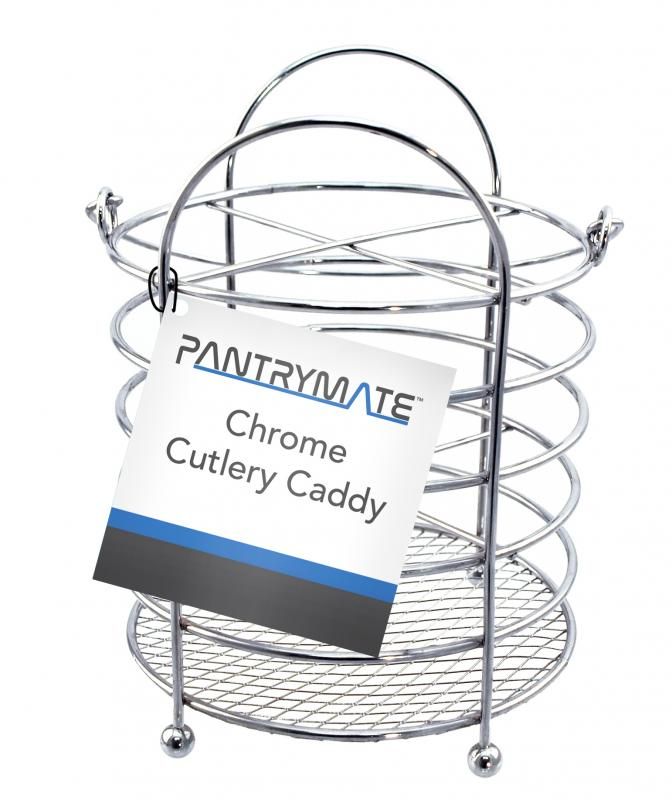 This chrome cutlery caddy is perfect for a variety of tasks. Its durable design and reliable size make it a must-have for any home or office.