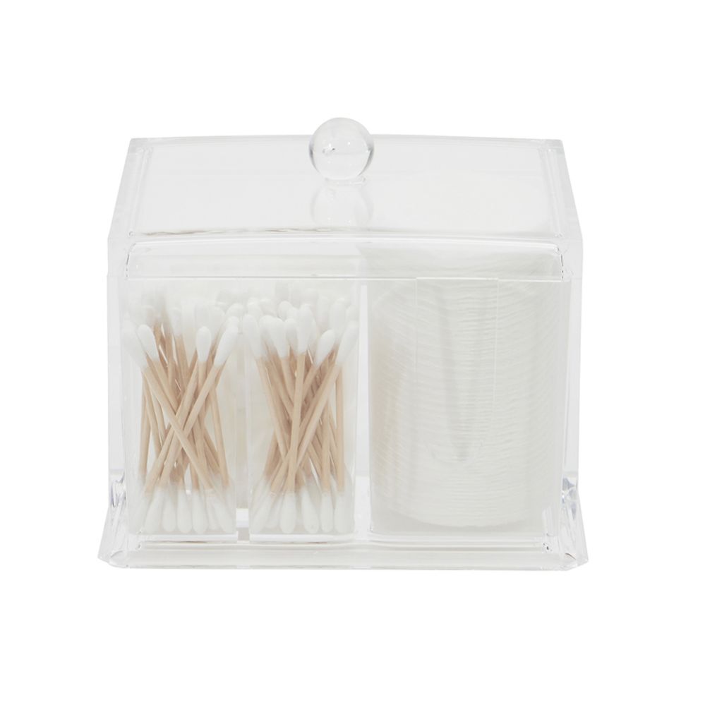 Features dual compartments for organizing cotton swabs and pads
