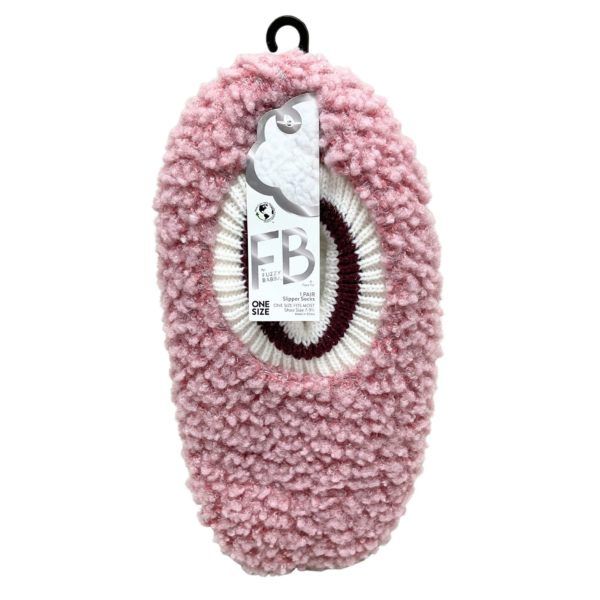 Treat your feet to ultimate comfort with the Fuzzy Babba 1 Pack Women’s Pink Poodle Fur Slipper With Knit Cuff in One Size. Featuring a soft, curly poodle-textured faux fur exterior in blush pink, these cozy slippers bring warmth and charm to your everyday lounge wear. The ribbed knit cuff with maroon and white stripes offers a snug, secure fit while adding a stylish contrast. Inside, the plush sherpa lining keeps feet toasty, and the non-slip grip dots on the sole provide extra safety on smooth floors. Perfect for relaxing, gifting, or wearing year-round, these slippers combine comfort and style beautifully. Comes packaged with a Fuzzy Babba tag and hanger.,Fuzzy Babba 1 Pack Womens Pink Poodle Fur Slipper With Knit Cuff in One Size Light Pink,