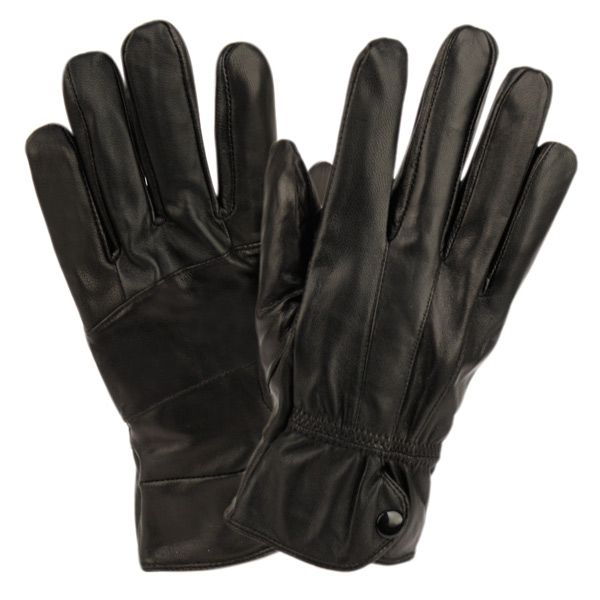 ladies genuine leather gloves with faux fur lining & button adjust cuff