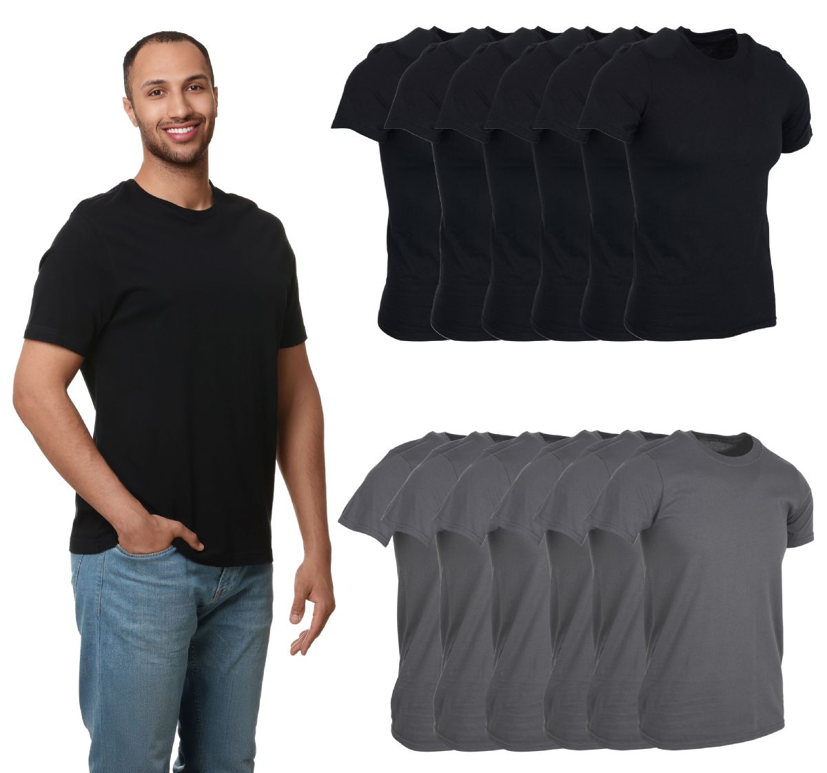 12 Bulk Men's Cotton Short Sleeve T-Shirt Size 3xlarge - Black And Gray