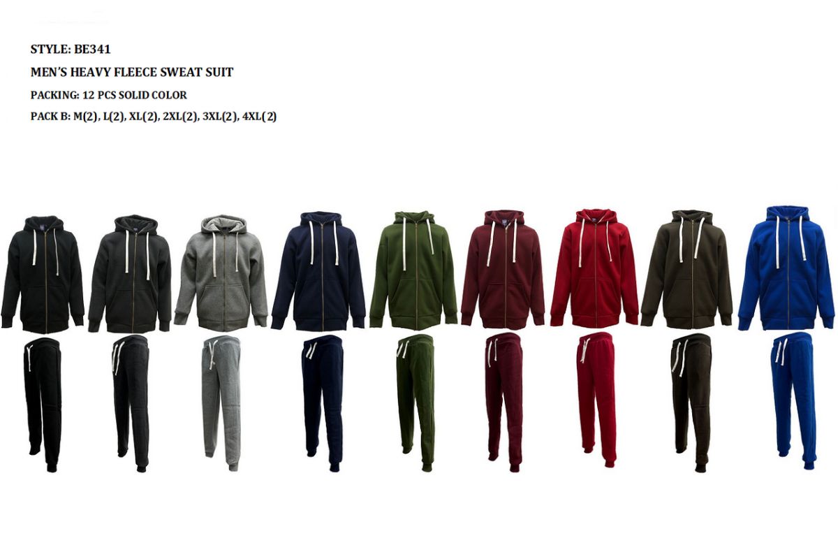 12 Bulk Men's Fashion Heavy Fleece Set Black