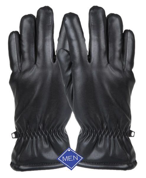 men's faux leather winter glove with fur lining
