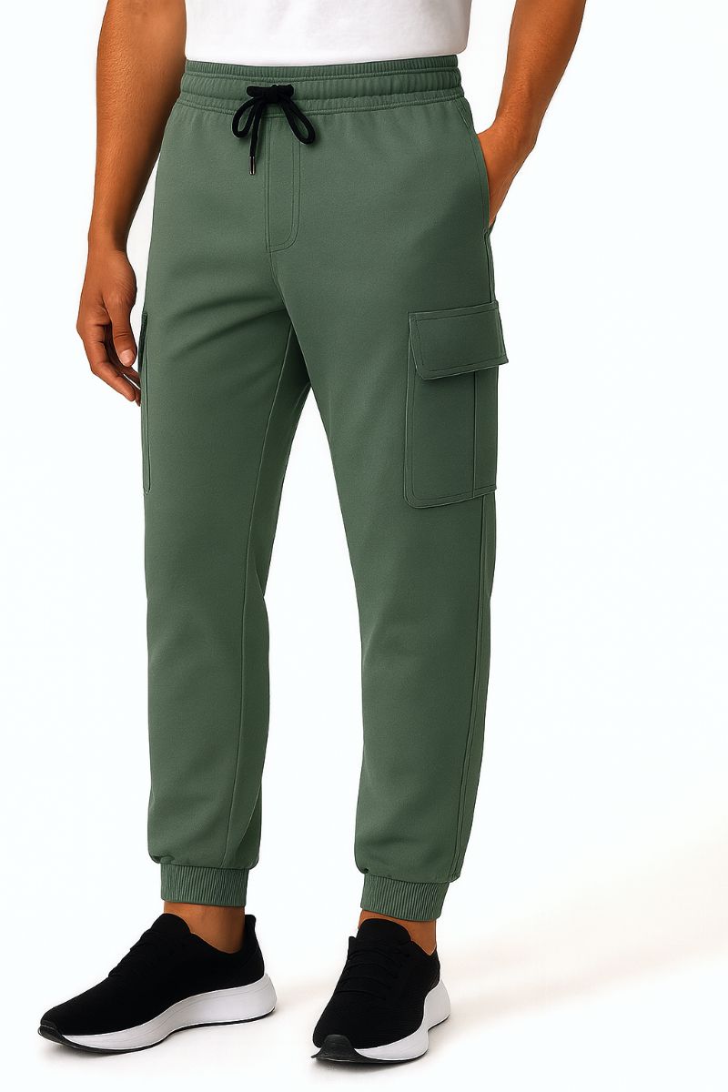 24 Bulk Mens Cotton Fleece Cargo Joggers In Basil Assorted Sizes S-xl