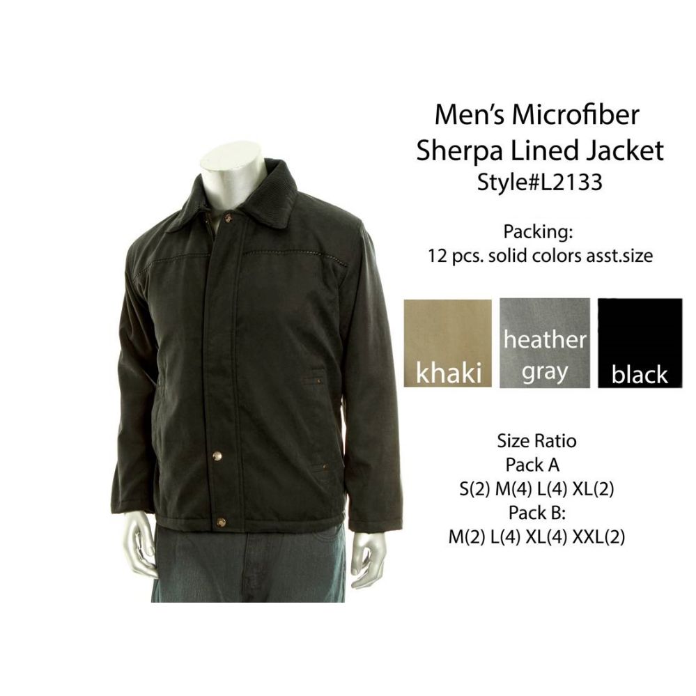 Brave the cold in this microfiber winter jacket. It features a plush Sherpa lining for ultimate warmth and a durable microfiber exterior to block wind, making it a reliable choice for the winter season.