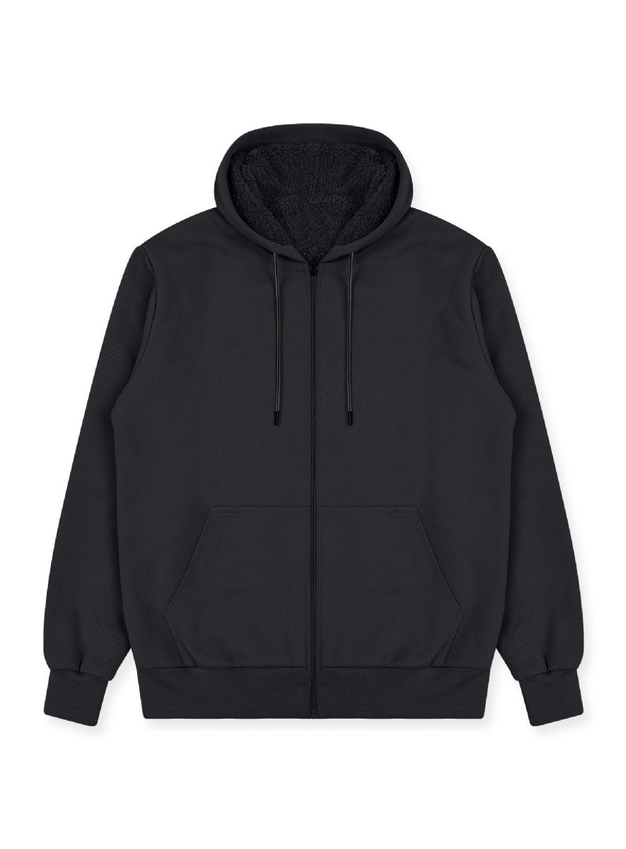 12 Bulk Mens Sherpa Lined Textured Hoodie In Charcoal And Black Assorted Sizes S-xl