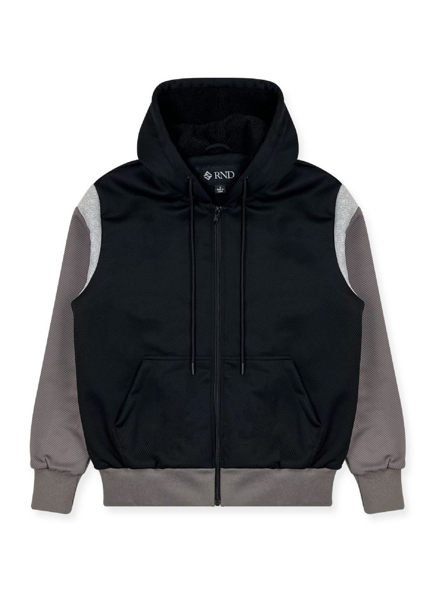 12 Bulk Mens Sherpa Lined Textured Hoodie In Charcoal And Black Assorted Sizes S-xl