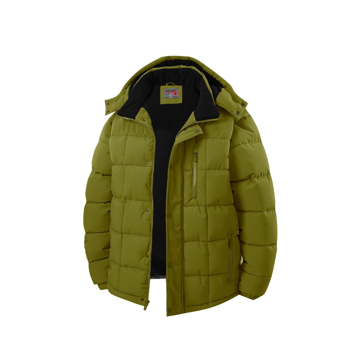 Men's Woven Padded Bubble Jacket With Zip Off Hood and polar fleece lining