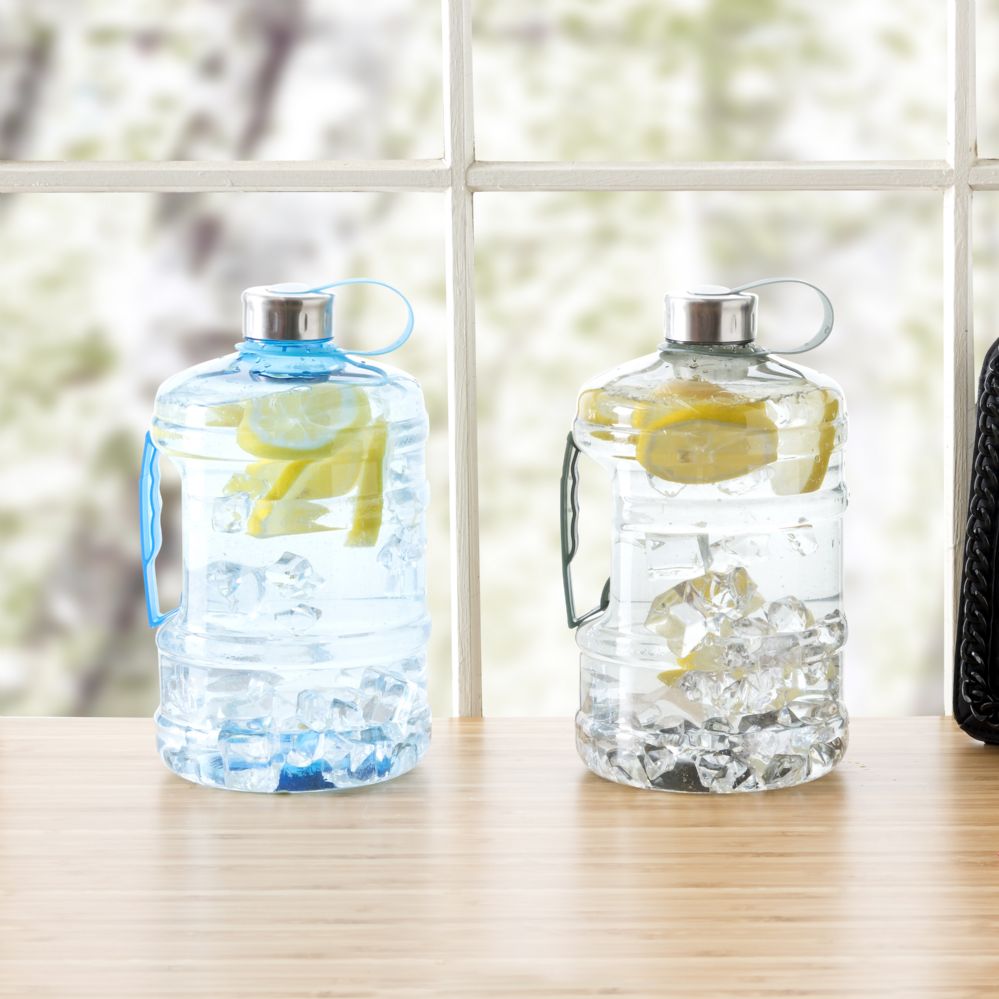 Whether training hard indoors or out, count on this trusty high-capacity plastic bottle to meet your daily water intake and hydration needs. The tether keeps the bottle and cap together, so you never have to worry about misplacing the cap. The large capacity gives you full day hydration, while conveniently limiting the need for constant refills compared to smaller size travel bottles. Take this bottle with you on hikes, camp sites, the gym, the office. The lightweight design coupled with its large handle makes it easy to tote this bottle wherever you want to go. The wide mouth provides plenty of room to toss in some ice cubes to chill your drink. Hand wash recommended.