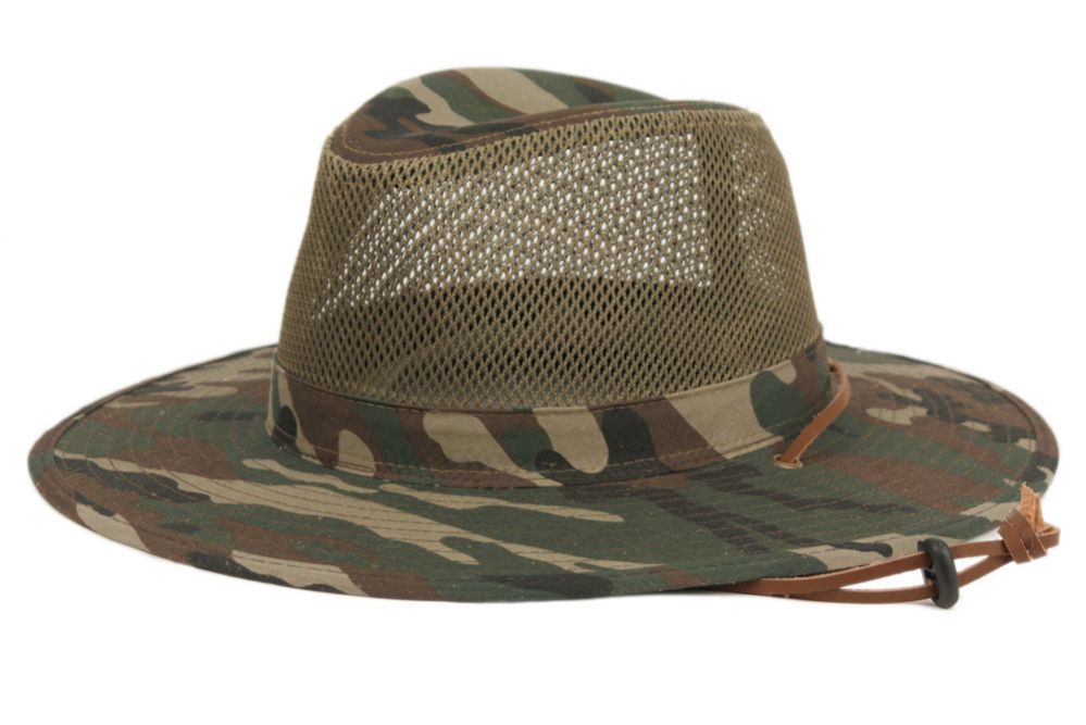 outdoor safari hat with mesh crown and adjustable chin cord strap