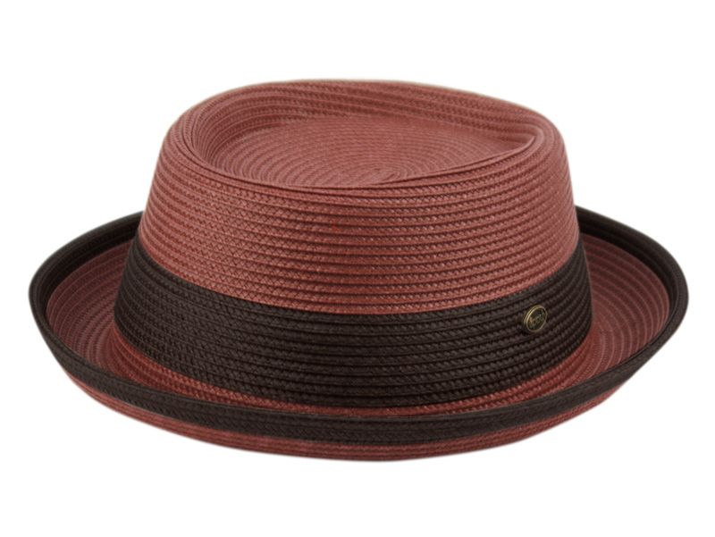 12 Bulk Poly Braid Pork Pie Hats With Color Band Assorted Burgundy/Black