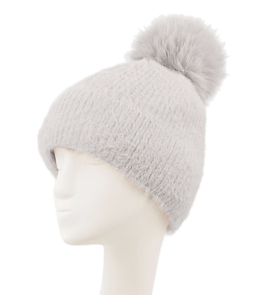 soft winter knit cuffed pompom beanie with soft velvet lining