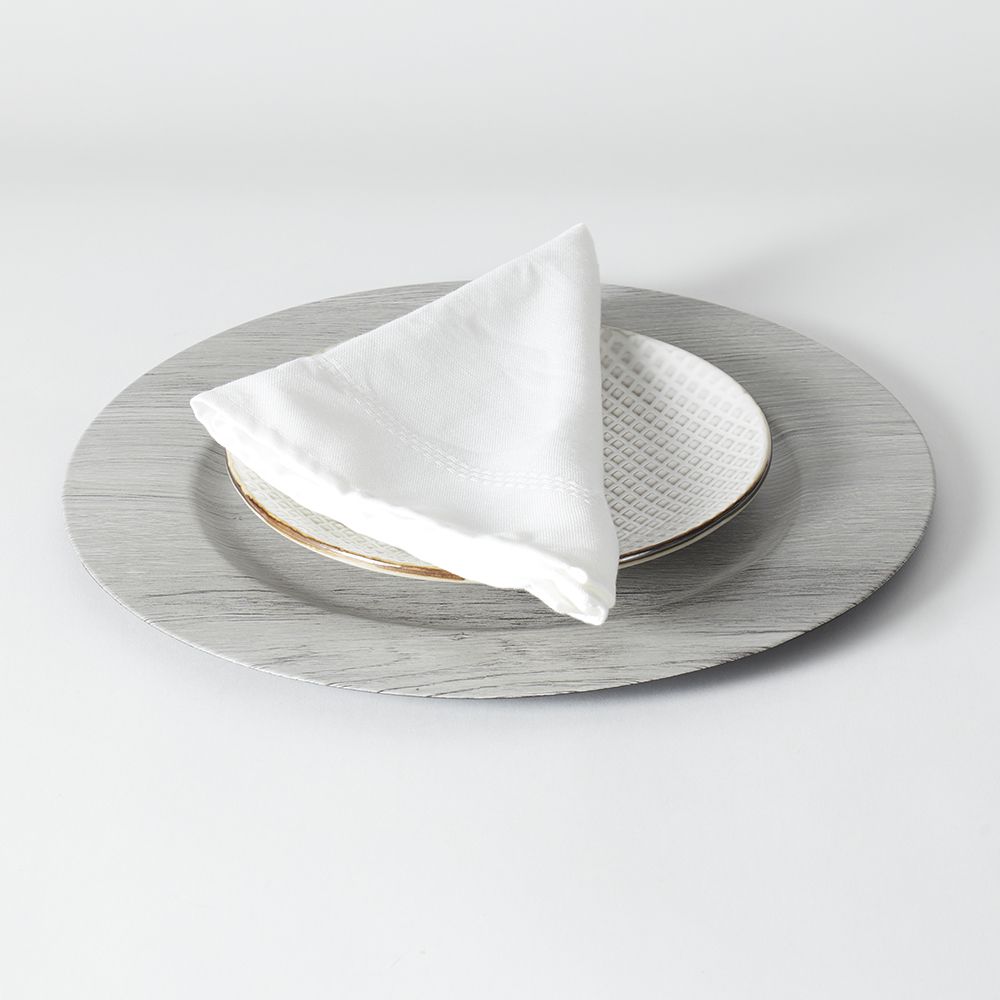 Get yourself a beautiful backdrop for your next formal dinner with this charger plate. It will help elevate the ambience of your table setting, and will show off your food elegantly. It is made from durable plastic, but has a timber grey finish that adds a rustic touch to your table setting. Use not only for placing dinner, as it can also be used for serving mini appetizers or a plate of cookies. Hand wash to clean.
