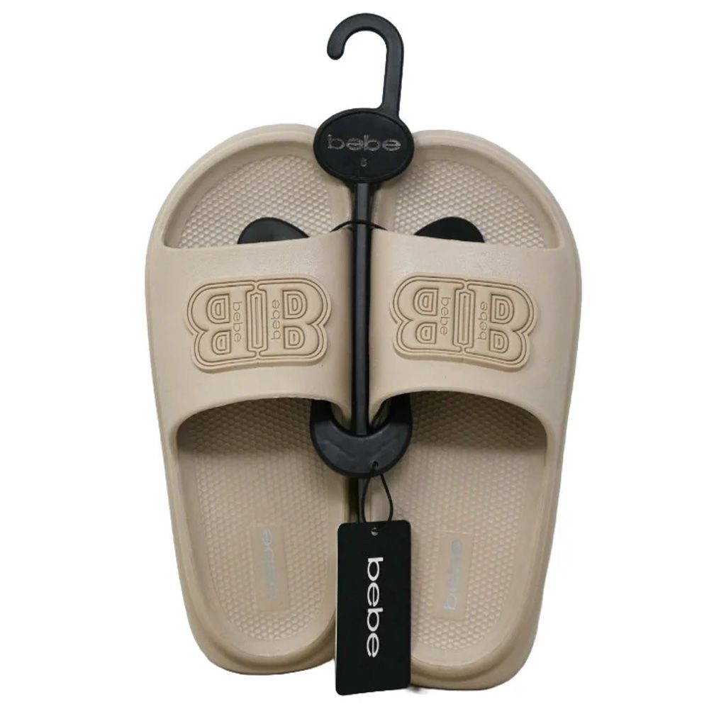 The Taupe Bebe Women Eva Slide wDouble B Rubber Patch 5-Asst Size is a sophisticated and neutral essential for any modern footwear collection. Featuring a trendy taupe colorway, these slides are accented with a premium "Double B" rubber patch that showcases the iconic Bebe brand aesthetic. Manufactured from high-quality EVA materials, they are engineered to be durable for long-lasting use while remaining exceptionally lightweight for effortless wear. The soft and comfortable fit provides a cushioned footbed for all-day support, and the open, breathable design ensures maximum comfort during warm weather. Professionally packaged with a hook for easy retail display, these slides are perfect for casual outings, beach days, or lounging in style.
