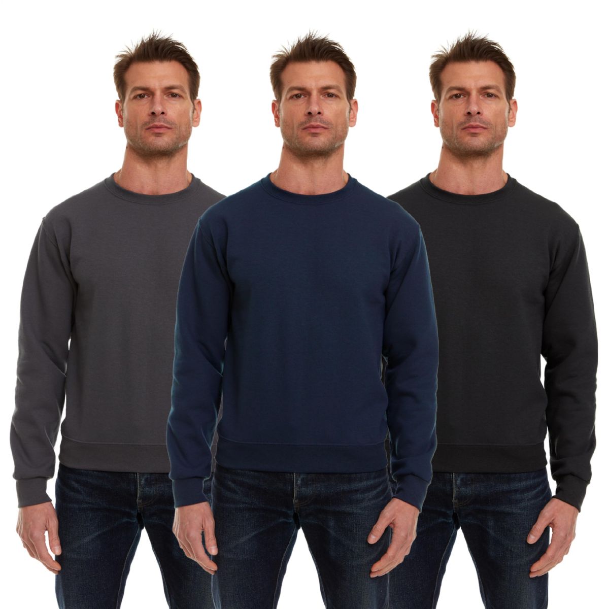 12 Bulk Unisex Fleece Line Cotton Crew Neck Sweat Shirt Assorted Gray Navy Black Size Xlarge