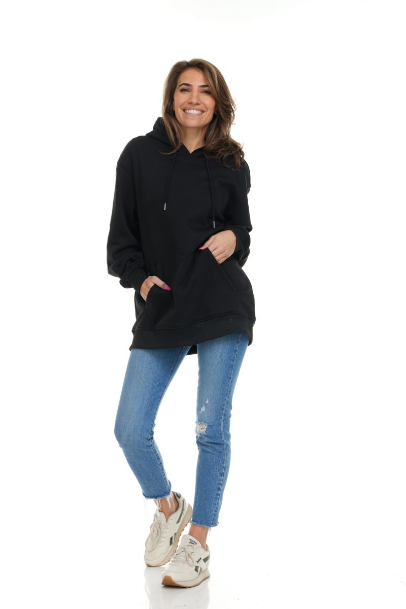 24 Bulk Women's Cotton Oversized Hoodie Sweat Shirt Black Size Large