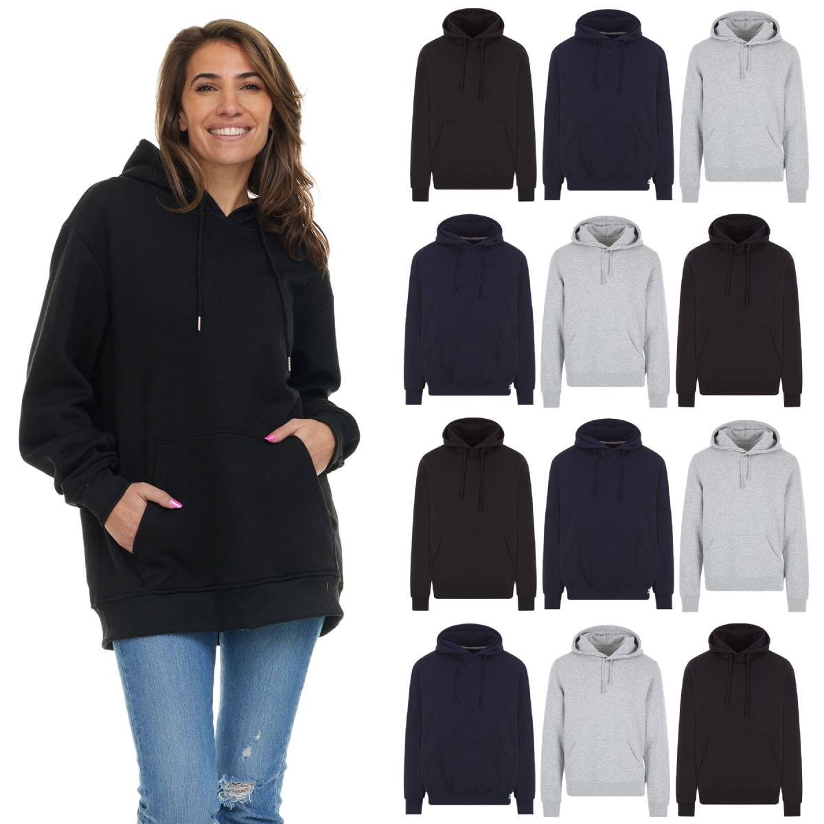 12 Bulk Women's Cotton Oversized Hoodie Sweat Shirt Assorted Dark Colors Size Medium