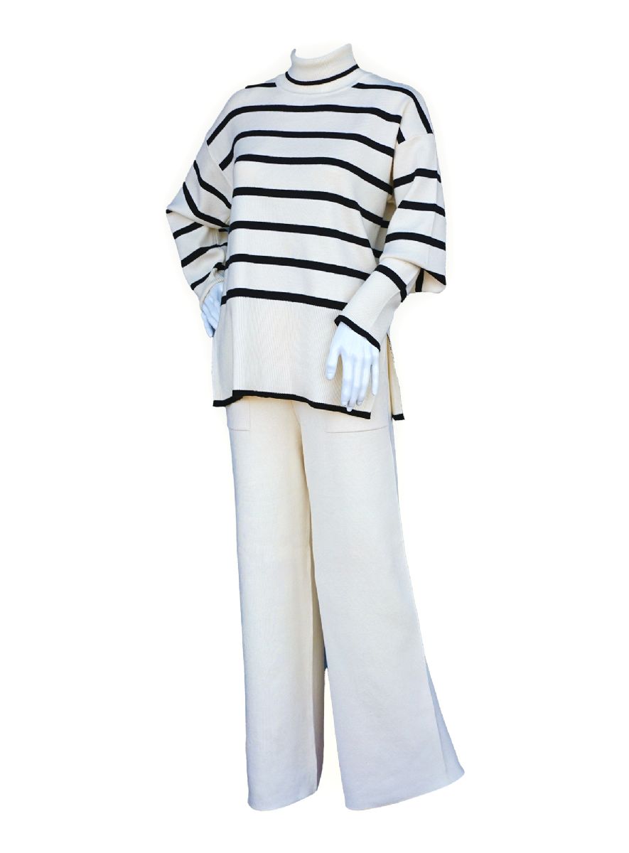 12 Bulk Womens 2-Piece Striped Knit Lounge Set Size S/m And L/xl , Ivory