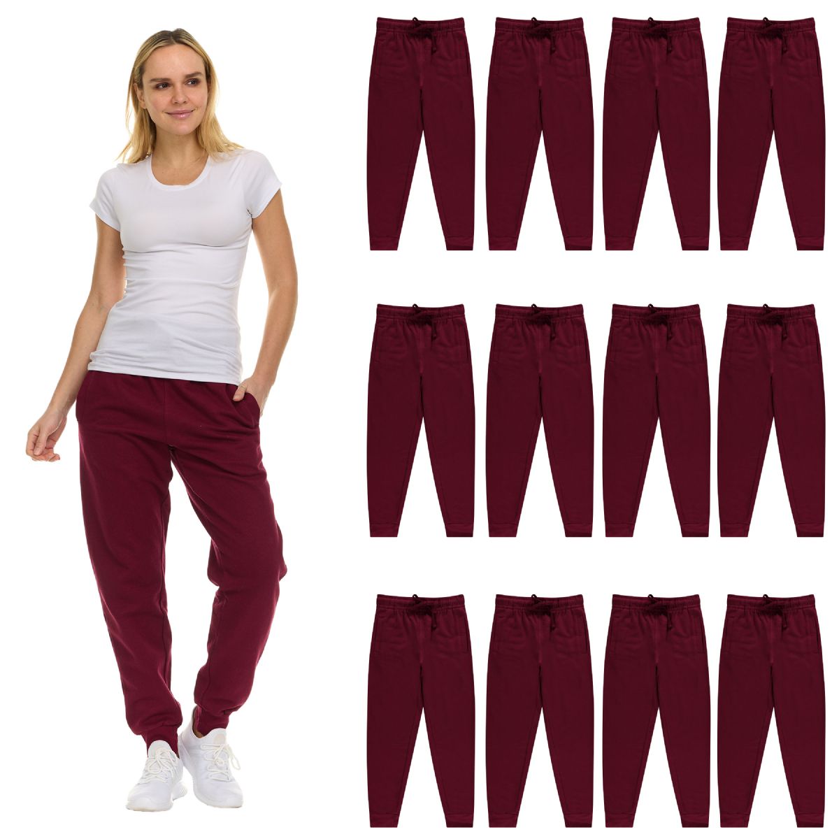 12 Bulk Womens Fleece Lined Jogger With Pocket In Burgundy Size Large