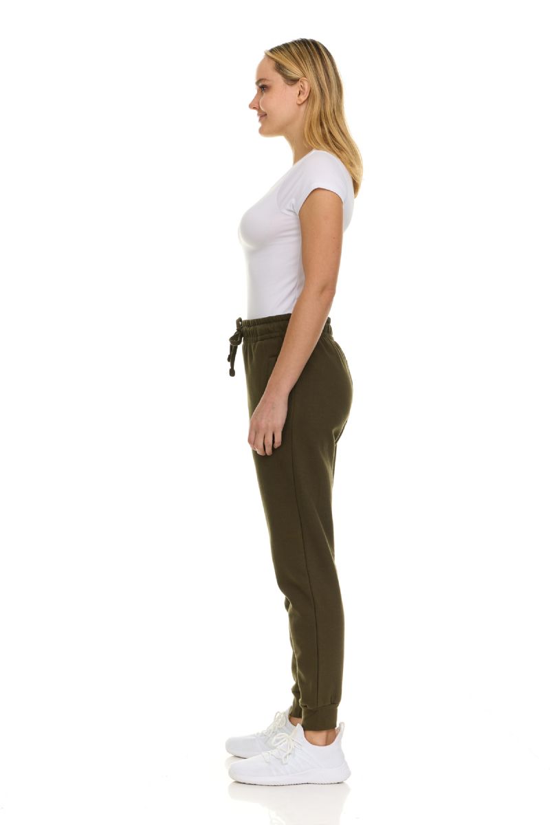 12 Bulk Womens Fleece Lined Jogger With Pocket In Olive Green Size Small