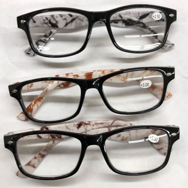 Other features: Assorted power lenses (+1.00 to +4.00), marble design, durable, lightweight, stylish