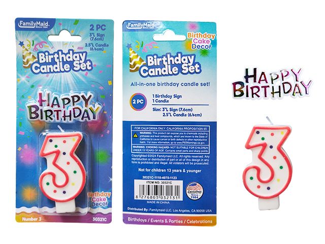 Coordinated 2-Piece Set: Includes one large Number 3 candle and one "Happy Birthday" sign candle, providing a simple way to achieve a complete decorative look with a single purchase.