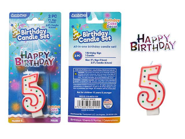 Coordinated 2-Piece Set: Includes one large Number 5 candle and one "Happy Birthday" sign candle, providing a simple way to achieve a complete decorative look with a single purchase.