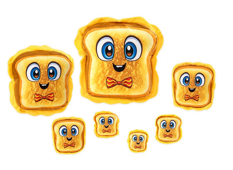 Bring home a warm, novelty treat with the 7-12 inch Melt - Cheese Sandwich Plush Toy. This small stuffed animal is shaped like a grilled cheese sandwich (or similar cheesy food item) named Melt. Perfect for carnival prizes, food-themed retail, or collecting small novelty plush toys.