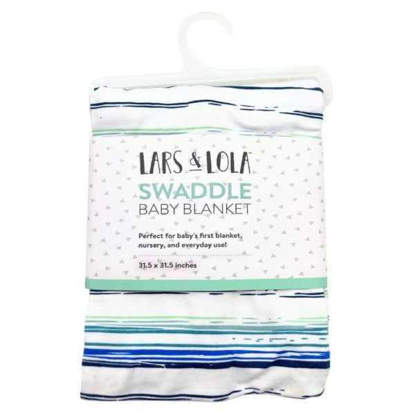 The Lars & Lola Baby Swaddle Blanket offers a soft and cozy wrap designed for baby’s first blanket, nursery use, and everyday comfort, with assorted adorable designs including stripes and heart patterns. Each blanket measures 31.5 x 31.5 inches and comes neatly packaged on a hanging display with a printed sleeve showing the design through the top and bottom for easy viewing. Perfect for snuggling newborns or adding a gentle layer in strollers and cribs, these lightweight swaddles bring both style and practicality to baby essentials.,Lars and Lola Baby Swaddle Blanket in Assorted Designs,