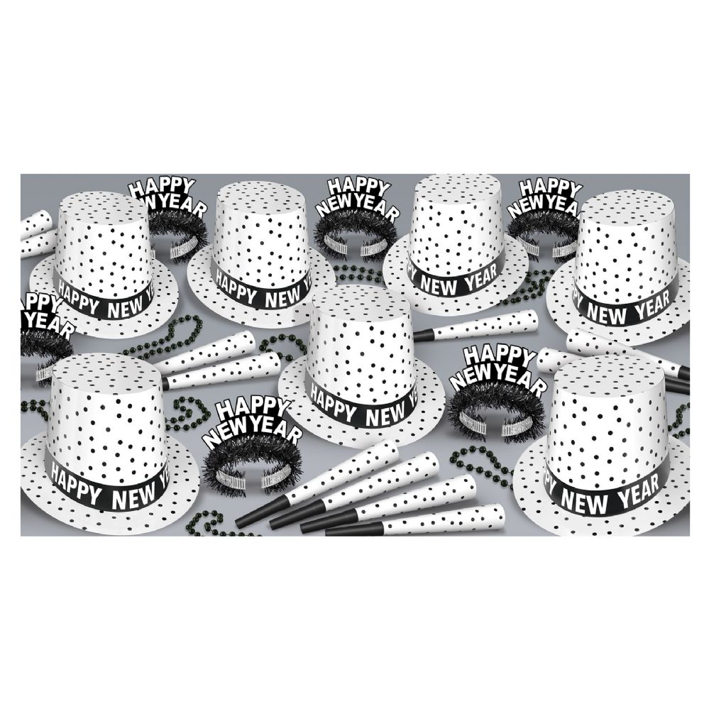 The New Year Tux Assortment for 50 provides fun and festive accessories to help guests celebrate New Year's Eve in style.