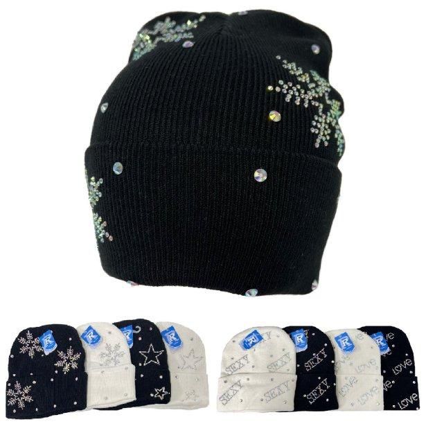 AB Rhinestone Knitted Cuffed Hat (Assorted Styles)