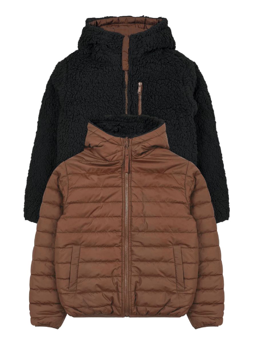 24 Bulk Boys Reversible Jacket With Sherpa Lining In Brown Assorted Sizes 4-7
