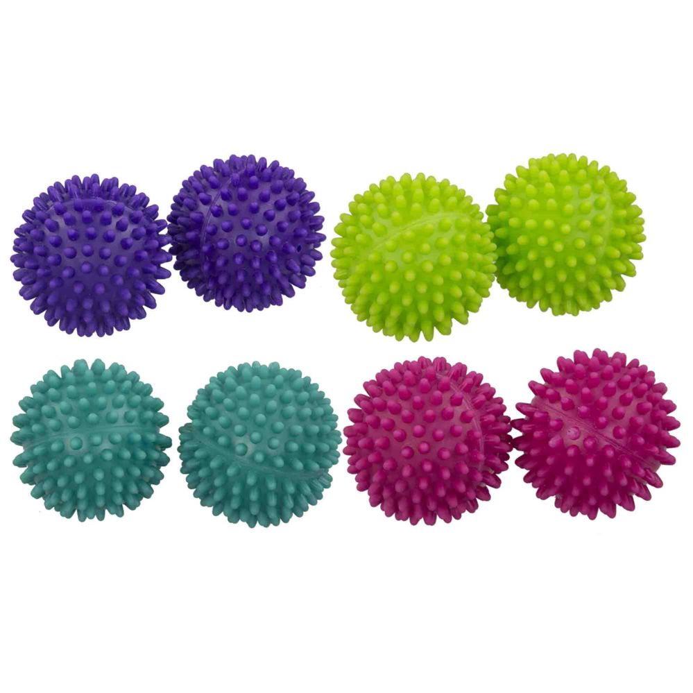 Just one look at these bold and funky designed dryer balls, and you'll gleefully accept laundry duty with open arms. Their eye-catching color makes them not only stylish, but easy to find when you need to use them. As opposed to dryer sheets and fabric softeners that may contain harsh chemicals, these dryer balls are made from non-toxic materials. These non-toxic dryer balls provide a natural way to dry your laundry. The spiked design tumbles through your clothes, loosens and separates wet and dense loads of laundry to eliminate wrinkles and lint. It does this all while softening your clothes. Toss 2 for a standard load and toss 4 or more for a larger load.