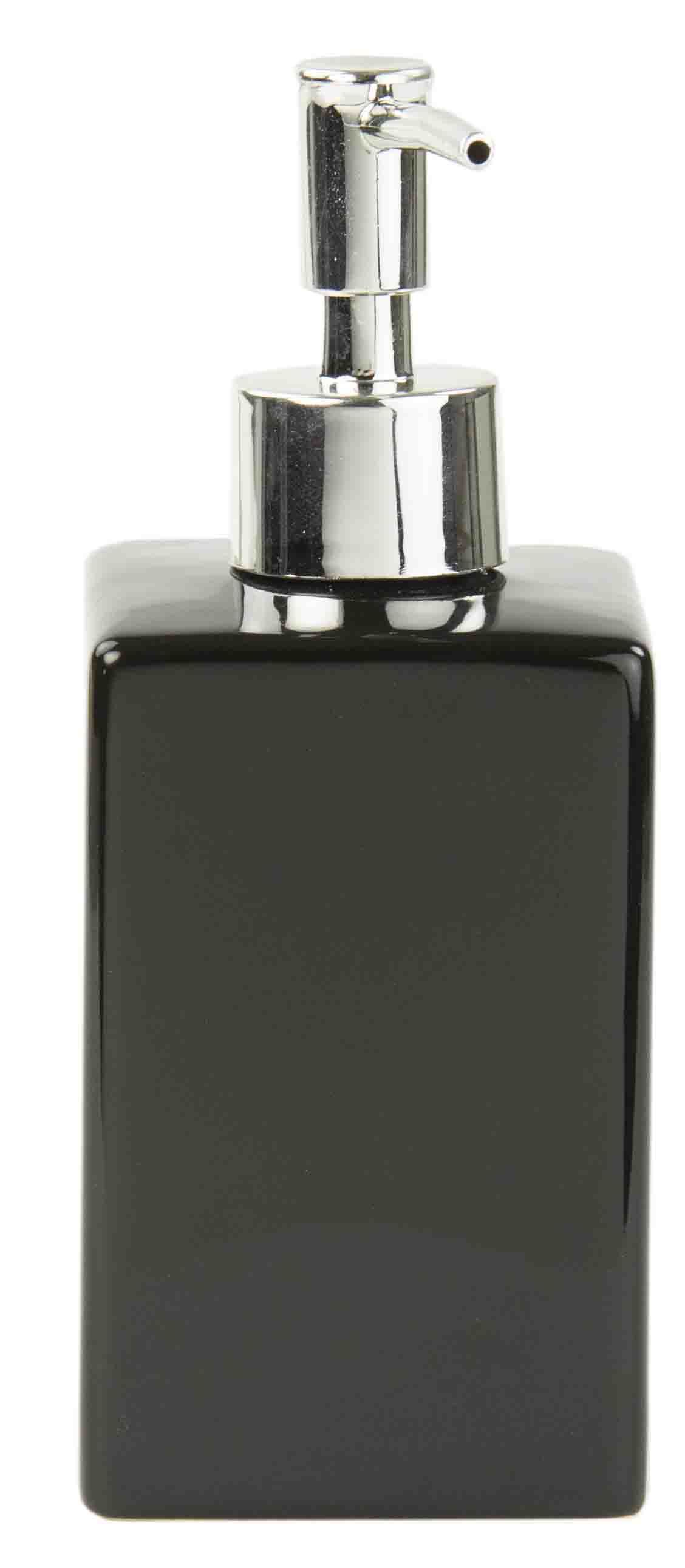 Made of heavy duty ceramic, it has a beautiful, simple polish finish that fits perfectly in any home. Fill the 8 oz. soap dispenser, and simply press on the stainless steel pump to squirt hand soap, lotion or dish soap. Great to use in the kitchen or bathroom.