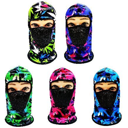 This colorful marijuana ninja face mask combines style and breathability, ideal for outdoor activities, costumes, or casual streetwear.