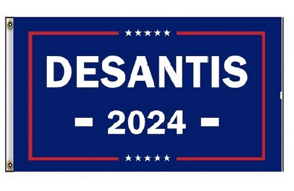 Show political support with this 3x5 foot DeSantis 2024 flag. Featuring a bold blue background, it is made from durable material suitable for flying on a pole or displaying on a wall.