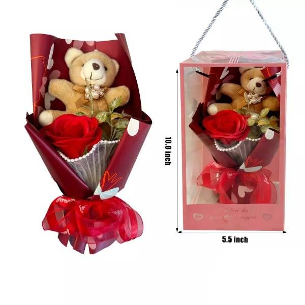 A Flower & Bear Gift Set measures 10 Inch and includes a floral item paired with a plush bear.