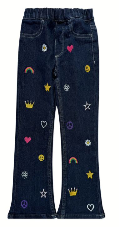 Flare cut, Pull-on waistband, Embroidered Patches