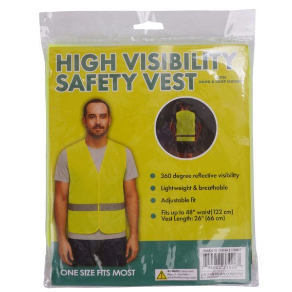 Stay safe and seen with this Fluorescent Green High Visibility Reflective Safety Vest, made from lightweight, breathable mesh veil material for comfort during extended wear. It features a single reflective strip across the chest to enhance visibility in low-light or high-traffic environments, making it ideal for construction zones, roadwork, jogging, biking, event staffing, or warehouse settings. Designed in a one-size-fits-most style, the vest includes an easy front closure that allows for quick on-and-off wear. Practical, durable, and essential for safety-conscious activities, this vest is a convenient choice for professionals and everyday users alike. The vest comes packaged in a polyba with an insert card. The package measures 8.5" x 11.4".,High Visability Fluorescent Green Safety Vest with Reflective Strip,