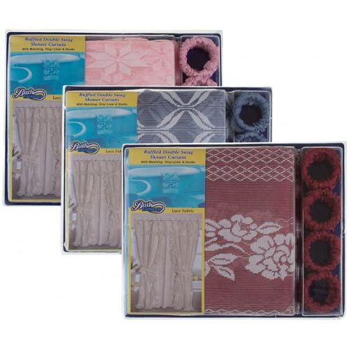 Add elegance and privacy to your bathroom with this lace double swag shower curtain and window set, designed to enhance décor while offering functionality.