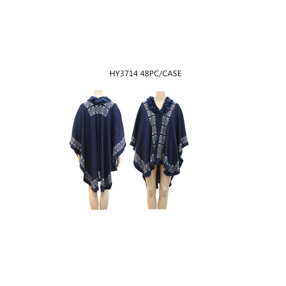 Stay cozy and stylish with this navy blue ladies fashion winter poncho. Designed to fit most sizes, it?s perfect for layering during the colder months.