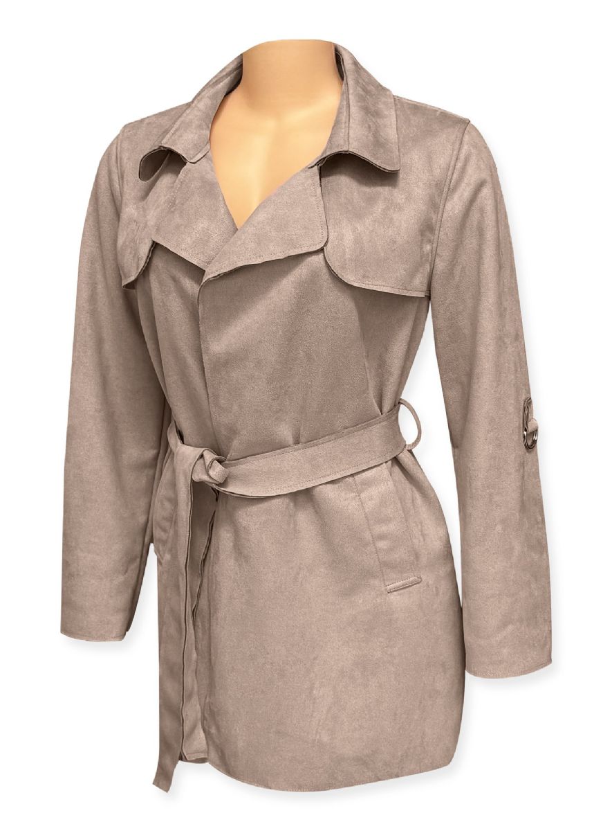 24 Bulk Ladies Long Faux Suede Trench Coat In Beige Assorted Sizes S-xl