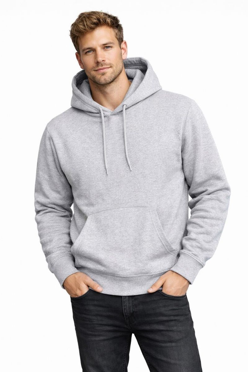 24 Bulk Men's Cotton Fleece Pullover Hooded Sweat Shirt Heather Gray Assorted Sizes M- 2xl