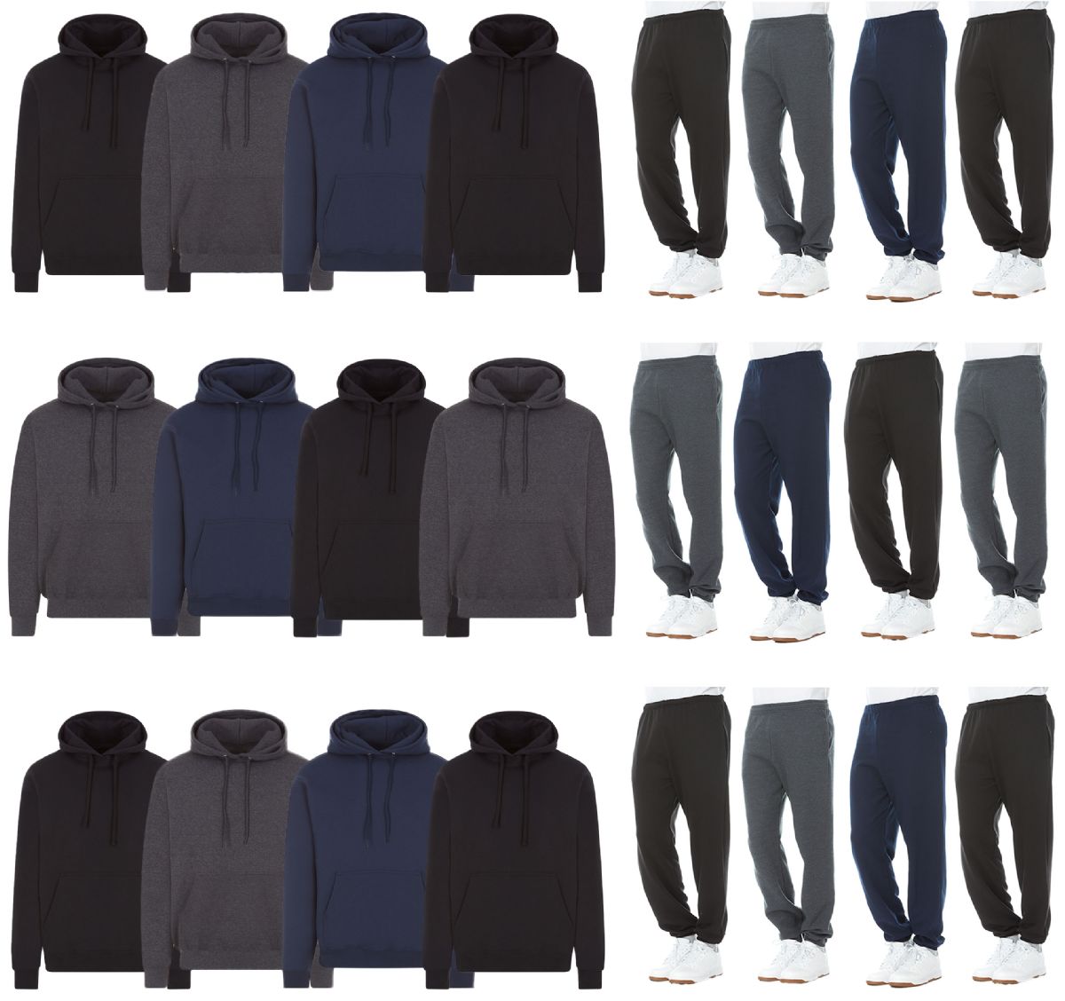 24 Bulk Mens Fleece Cotton Blend 12 Jogger Pants And 12 Hoodies In Assorted Dark Colors Size Medium