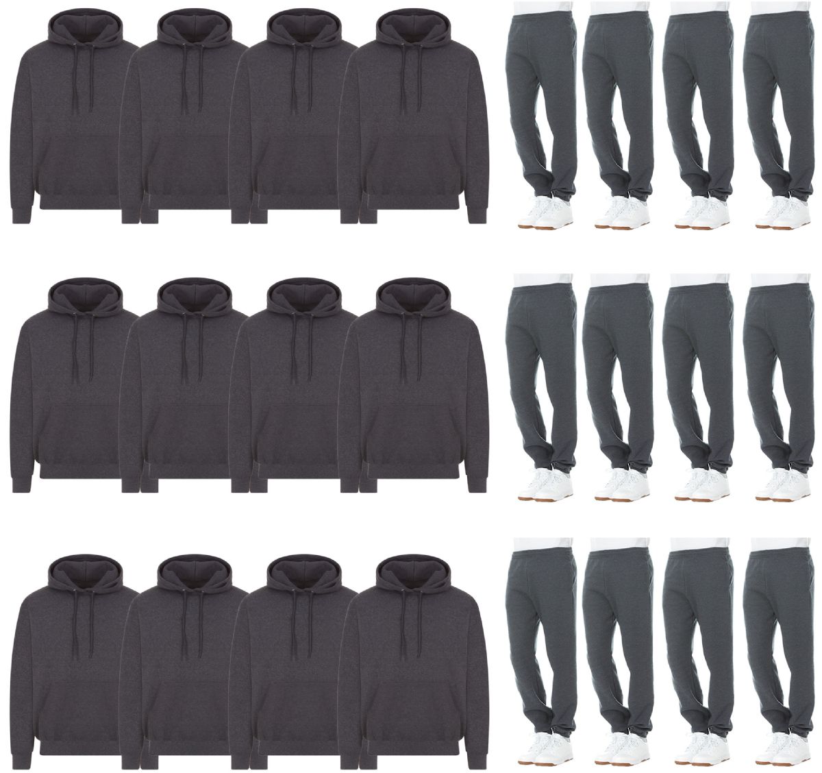 24 Bulk Mens Fleece Cotton Blend 12 Jogger Pants And 12 Hoodies In Gray Size Large