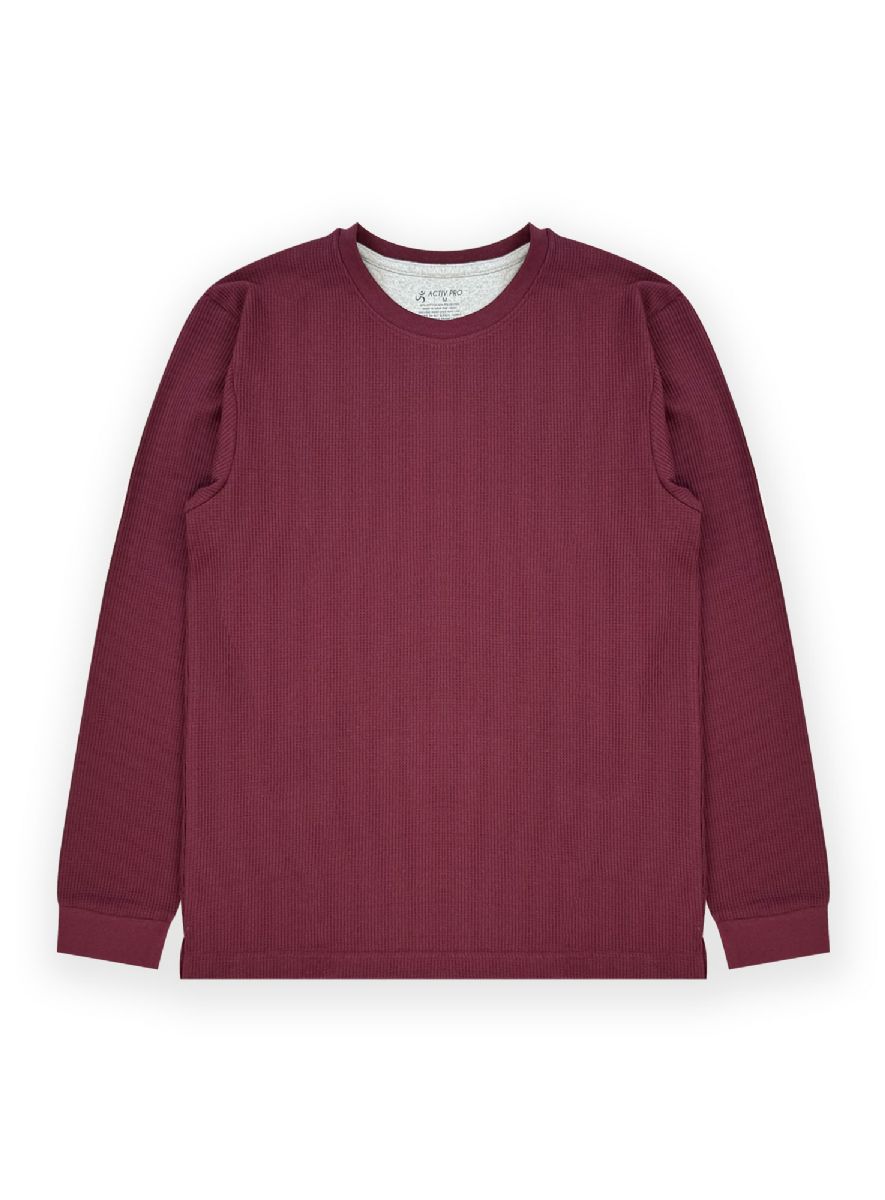 24 Bulk Mens Thermal Top Crew Neck In Burgundy Assorted Sizes S-2xl