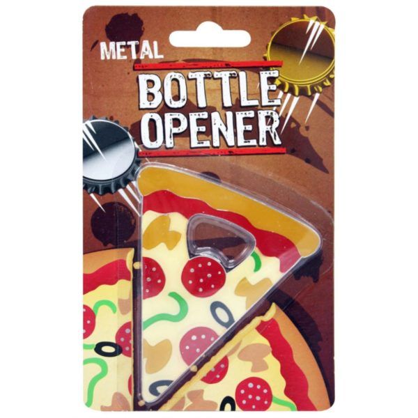 Metal Pizza Slice Bottle Opener features a colorful pizza slice design with realistic topping details for a fun and eye-catching look. Made from sturdy metal, this novelty bottle opener easily removes caps from bottles and adds a playful touch to any bar setup or kitchen. Perfect for parties, gifts, or everyday use, this pizza-themed opener combines functionality with humor.,Metal Pizza Slice Bottle Opener,